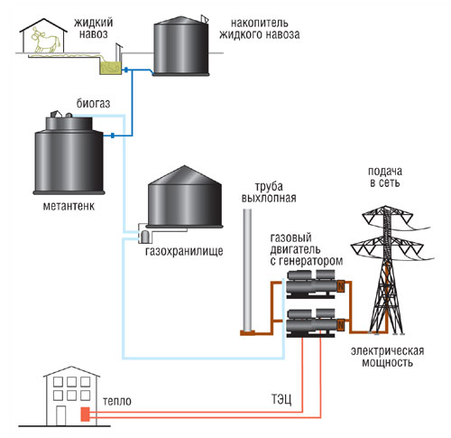 Рисунок 3 — Производство электрической энергии при использовании биогаза