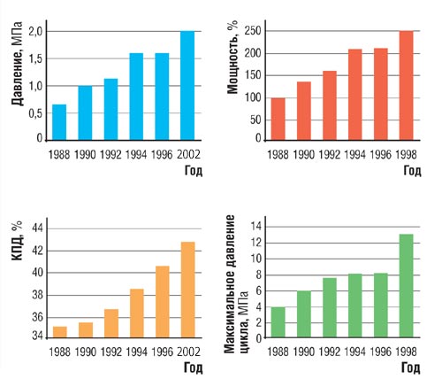 Рисунок 5 — Развитие газопоршневых двигателей (за период 1988 - 2002 гг.)