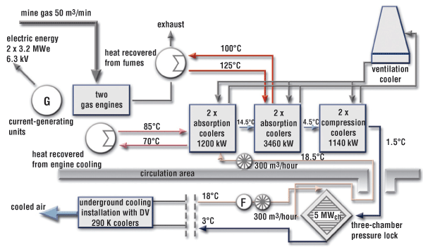 В польском шахтерском городе Pniowek 2 газопоршневые установки MWM (на момент монтажа - DEUTZ Power Systems) TBG 2032 V16 вырабатывают 6,6 МВт электроэнергии, 7 МВт тепловой энергии и 10,7 МВт на нужды охлаждения для обеспечения оптимальных условий работы в угольном забое, как для шахтеров так и для машин.