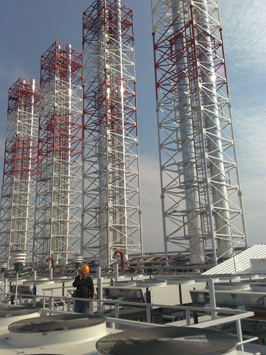 • Система аварийного охлаждения ("сухие градирни") и охлаждения газовоздушной смеси (встроенный теплообменник и "сухие градирни"). "Сухая градирня" — пластинчатый радиатор из оребрённых трубок с принудительной воздушной тягой.